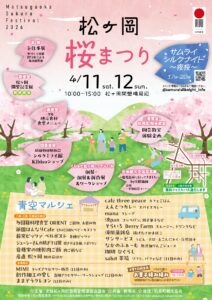 4/11(土)~4/12(日)「松ヶ岡桜まつり」が開催されます。 2026.03.19 4/11(土)~4/12(日)に【松ヶ岡開墾場周辺】にて、「松ヶ岡桜まつり」が開催されます。 松ヶ岡開墾場にて、青空マルシェやワークショップなど楽しい催しが盛りだくさんです。 ぜひご参加ください。 ■イベントタイトル:松ヶ岡桜まつり ■開催日時:2026年4月11日(土)~4月12日(日) 10:00~15:00 ■開催場所:松ヶ岡開墾場周辺 〇詳細はこちらから